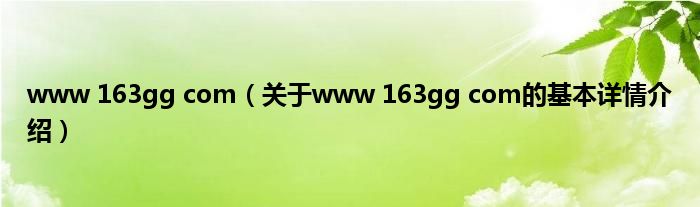 本文关于www 163gg com的基本详情介绍就讲解完毕,希望对大家有所帮助。