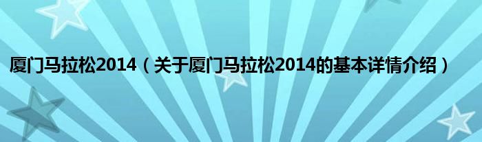 本文关于厦门马拉松2014的基本详情介绍就讲解完毕,希望对大家有所帮助。