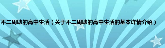 本文关于不二周助的高中生活的基本详情介绍就讲解完毕,希望对大家有所帮助。