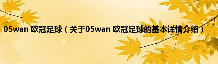 本文关于05wan 欧冠足球的基本详情介绍就讲解完毕,希望对大家有所帮助。