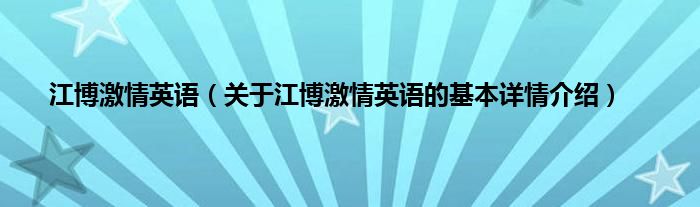 本文关于江博激情英语的基本详情介绍就讲解完毕,希望对大家有所帮助。
