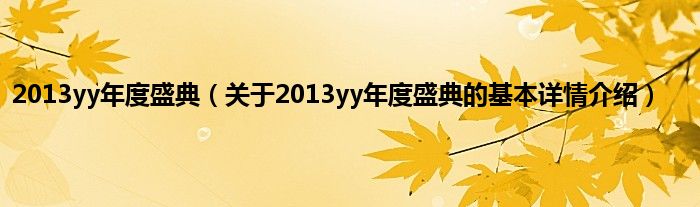 本文关于2013yy年度盛典的基本详情介绍就讲解完毕,希望对大家有所帮助。