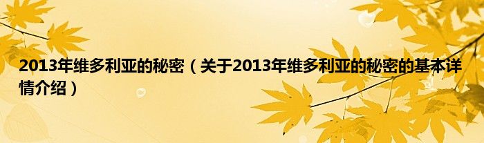 本文关于2013年维多利亚的秘密的基本详情介绍就讲解完毕,希望对大家有所帮助。