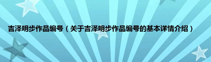 本文关于吉泽明步作品编号的基本详情介绍就讲解完毕,希望对大家有所帮助。