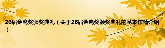 本文关于26届金鹰奖颁奖典礼的基本详情介绍就讲解完毕,希望对大家有所帮助。