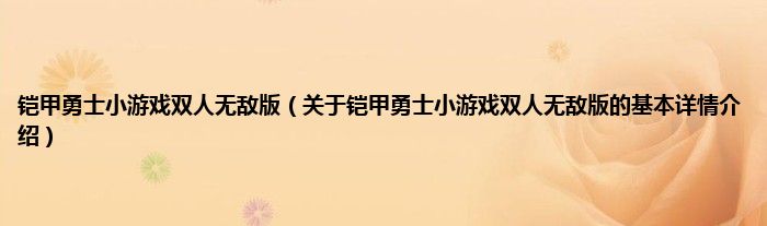 本文关于铠甲勇士小游戏双人无敌版的基本详情介绍就讲解完毕,希望对大家有所帮助。