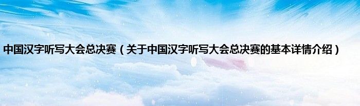 本文关于中国汉字听写大会总决赛的基本详情介绍就讲解完毕,希望对大家有所帮助。
