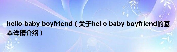 本文关于hello baby boyfriend的基本详情介绍就讲解完毕,希望对大家有所帮助。