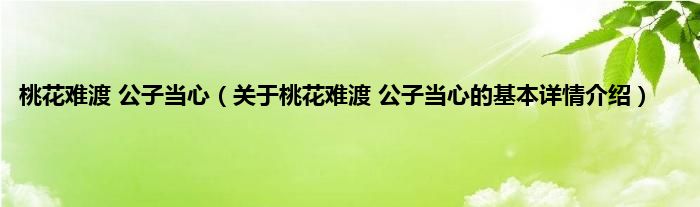 本文关于桃花难渡 公子当心的基本详情介绍就讲解完毕,希望对大家有所帮助。
