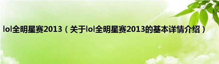 本文关于lol全明星赛2013的基本详情介绍就讲解完毕,希望对大家有所帮助。