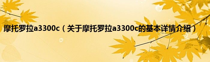 本文关于摩托罗拉a3300c的基本详情介绍就讲解完毕,希望对大家有所帮助。