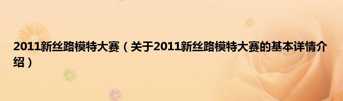 本文关于2011新丝路模特大赛的基本详情介绍就讲解完毕,希望对大家有所帮助。