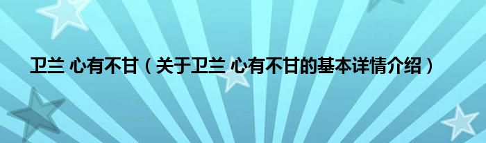 本文关于卫兰 心有不甘的基本详情介绍就讲解完毕,希望对大家有所帮助。