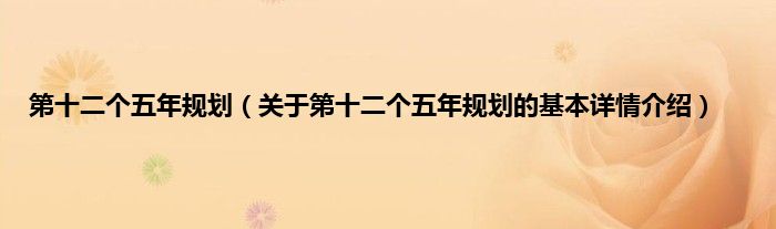 本文关于第十二个五年规划的基本详情介绍就讲解完毕,希望对大家有所帮助。