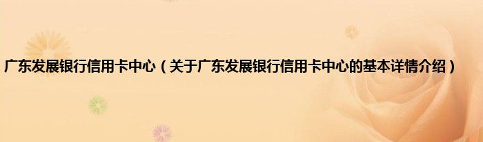 本文关于广东发展银行信用卡中心的基本详情介绍就讲解完毕,希望对大家有所帮助。