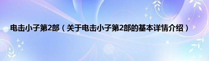电击小子第2部(关于电击小子第2部的基本详情介绍)