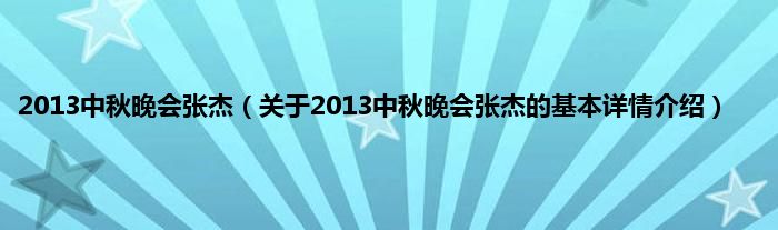 本文关于2013中秋晚会张杰的基本详情介绍就讲解完毕,希望对大家有所帮助。