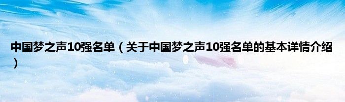 本文关于中国梦之声10强名单的基本详情介绍就讲解完毕,希望对大家有所帮助。
