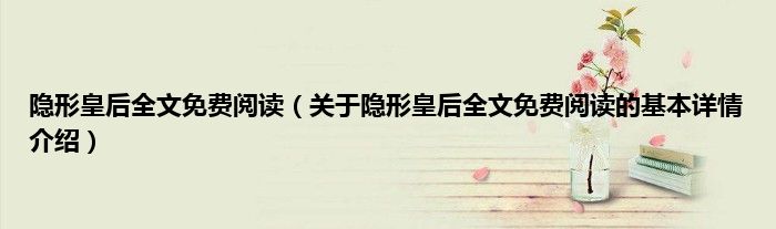本文关于隐形皇后全文免费阅读的基本详情介绍就讲解完毕,希望对大家有所帮助。