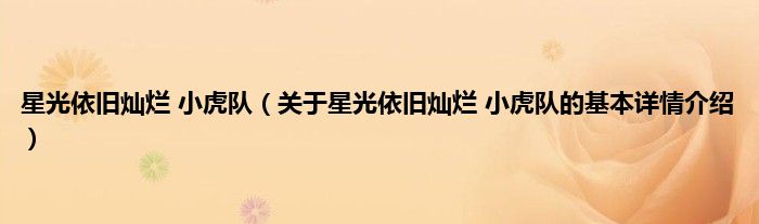 本文关于星光依旧灿烂 小虎队的基本详情介绍就讲解完毕,希望对大家有所帮助。