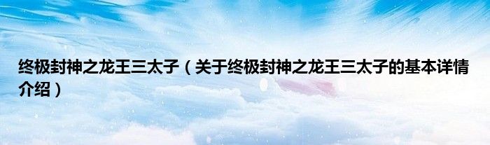 本文关于终极封神之龙王三太子的基本详情介绍就讲解完毕,希望对大家有所帮助。