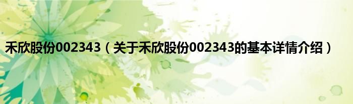 本文关于禾欣股份002343的基本详情介绍就讲解完毕,希望对大家有所帮助。