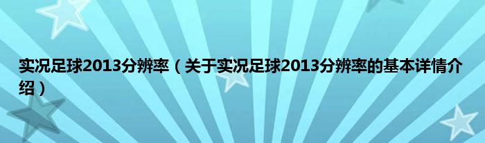 本文关于实况足球2013分辨率的基本详情介绍就讲解完毕,希望对大家有所帮助。