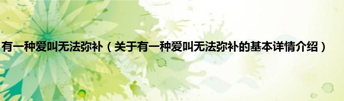 本文关于有一种爱叫无法弥补的基本详情介绍就讲解完毕,希望对大家有所帮助。
