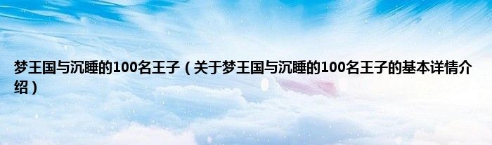本文关于梦王国与沉睡的100名王子的基本详情介绍就讲解完毕,希望对大家有所帮助。