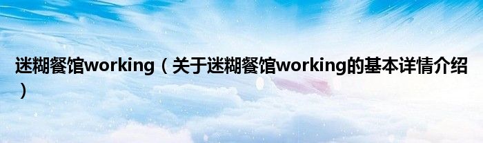 本文关于迷糊餐馆working的基本详情介绍就讲解完毕,希望对大家有所帮助。