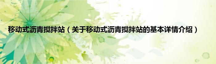 本文关于移动式沥青搅拌站的基本详情介绍就讲解完毕,希望对大家有所帮助。