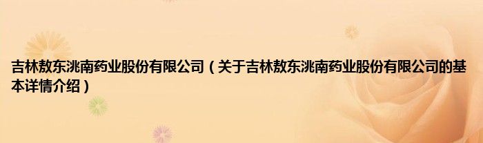 本文关于吉林敖东洮南药业股份有限公司的基本详情介绍就讲解完毕,希望对大家有所帮助。