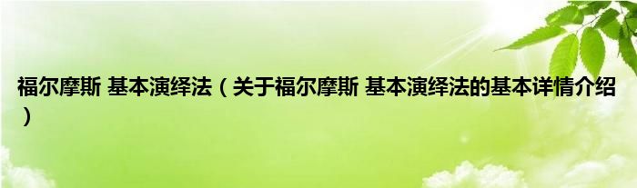 本文关于福尔摩斯 基本演绎法的基本详情介绍就讲解完毕,希望对大家有所帮助。