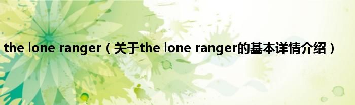 本文关于the lone ranger的基本详情介绍就讲解完毕,希望对大家有所帮助。