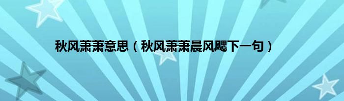 以上就是【秋风萧萧意思,秋风萧萧晨风飔下一句】相关内容。