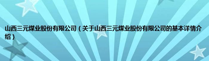 本文关于山西三元煤业股份有限公司的基本详情介绍就讲解完毕,希望对大家有所帮助。