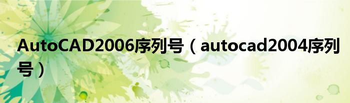 以上就是【AutoCAD2006序列号,autocad2004序列号】相关内容。
