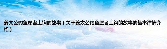 本文关于姜太公钓鱼愿者上钩的故事的基本详情介绍就讲解完毕,希望对大家有所帮助。