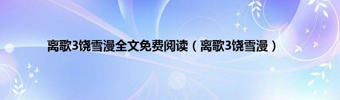 大家好,小问来为大家解答以上问题。离歌3饶雪漫全文免费阅读,离歌3饶雪漫这个很多人还不知道,现在让我们一起来看看吧!