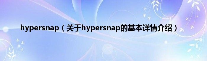 本文关于hypersnap的基本详情介绍就讲解完毕,希望对大家有所帮助。