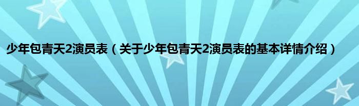 本文关于少年包青天2演员表的基本详情介绍就讲解完毕,希望对大家有所帮助。