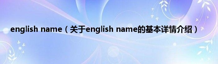 本文关于english name的基本详情介绍就讲解完毕,希望对大家有所帮助。