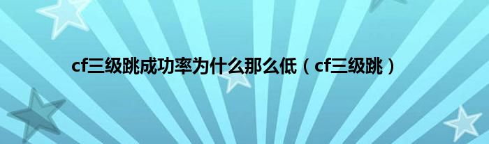 以上就是【cf三级跳成功率为什么那么低,cf三级跳】相关内容。