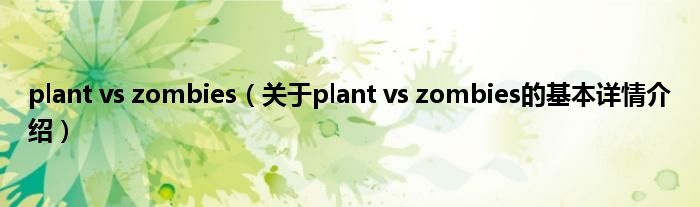 本文关于plant vs zombies的基本详情介绍就讲解完毕,希望对大家有所帮助。