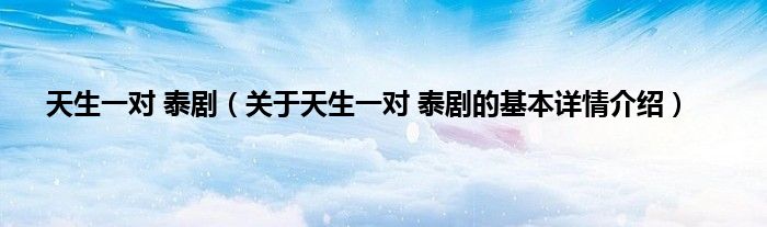 本文关于天生一对 泰剧的基本详情介绍就讲解完毕,希望对大家有所帮助。