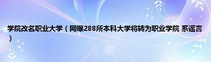 大家好,小问来为大家解答以上问题。学院改名职业大学,网曝288所本科大学将转为职业学院 系谣言这个很多人还不知道,现在让我们一起来看看吧!