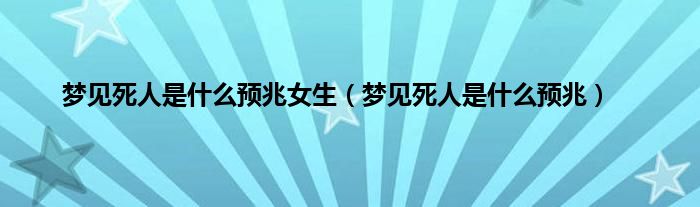 以上就是【梦见死人是什么预兆女生,梦见死人是什么预兆】相关内容。