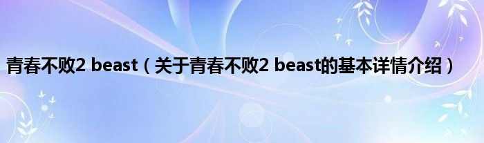 本文关于青春不败2 beast的基本详情介绍就讲解完毕,希望对大家有所帮助。