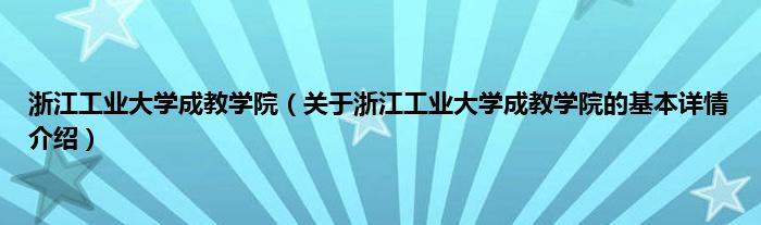 本文关于浙江工业大学成教学院的基本详情介绍就讲解完毕,希望对大家有所帮助。