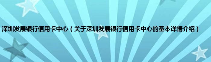 本文关于深圳发展银行信用卡中心的基本详情介绍就讲解完毕,希望对大家有所帮助。